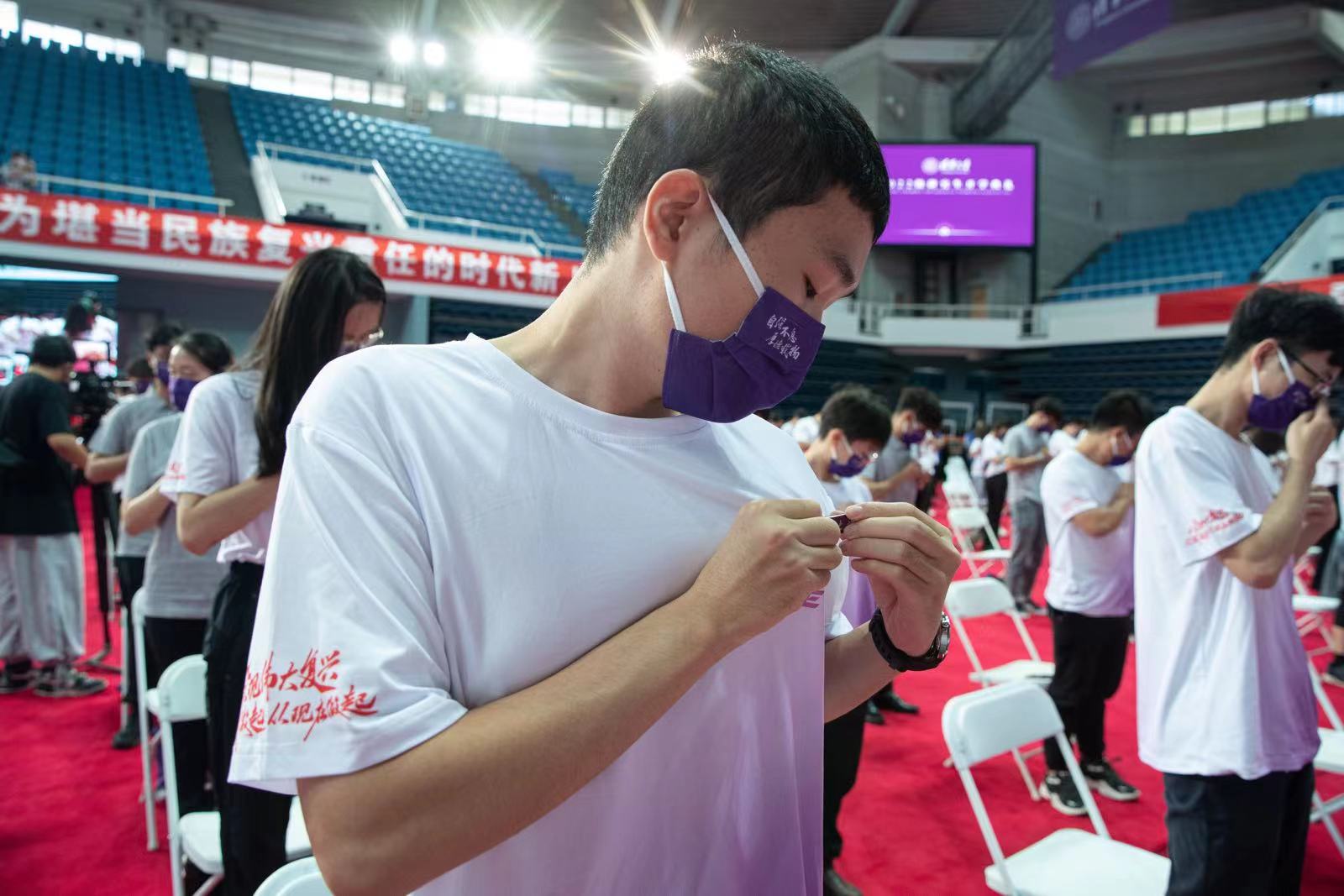 王希勤为新生代表佩戴开云线上(中国)网页版徽章