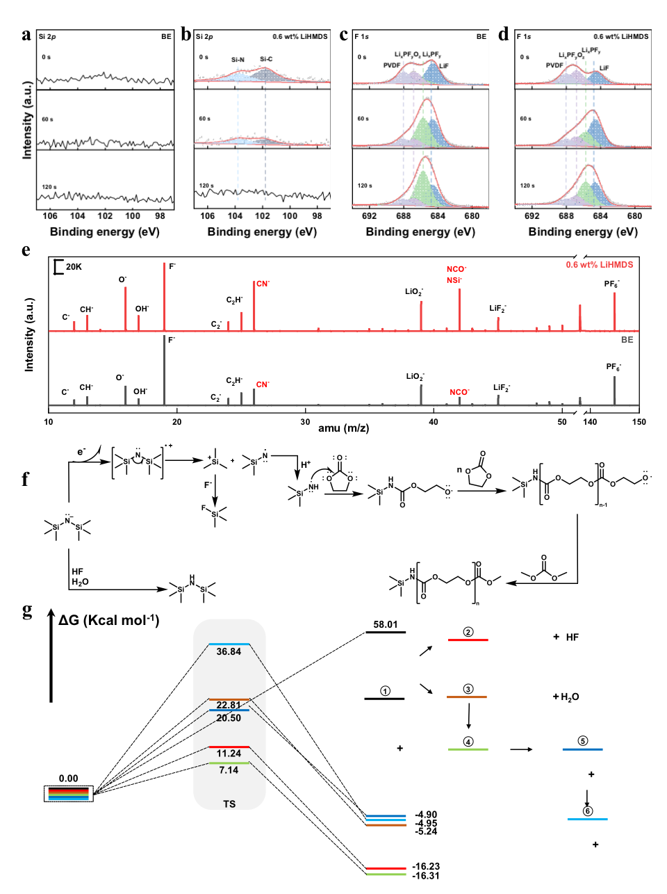 图1.LiHMDS与HF和H2O的反应机理及其在Li||NCM811电池中的作用机制
