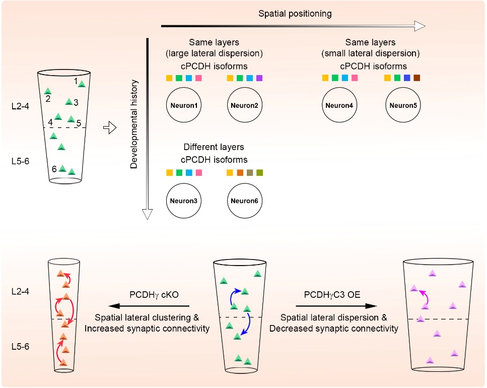 图1. cPCDHs在大脑新皮层兴奋性神经元中的表达规律和工作模式