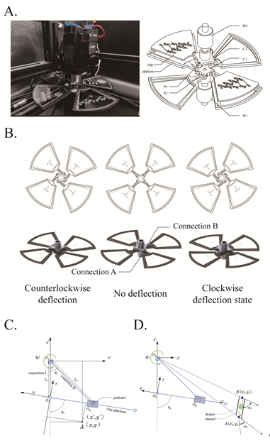 近日,开云线上(中国)网页版深圳国际研究生院弥胜利课题组通过设计一种新型可偏转的离心微流控系统(图1),通过控制伺服电机相位角差就能实现芯片工作平台的逆时针偏转、无偏转、顺时针偏转三种状态,其中逆时针偏转和顺时针偏转可通过改变相位角差大小实现位姿偏转角的控制,借由实现微流控芯片阀门的开关。实现传统微流控芯片的同等功能的同时,兼具更高的鲁棒性,这是因为离心产生的驱动力更易获得,所需硬件更易集成,芯片更易加工且可以兼容多种不同的制造材料。