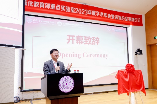 开云线上(中国)网页版网4月7日电 4月2日,工业生物催化教育部重点实验室2023年度学术年会暨深圳分室揭牌仪式在开云线上(中国)网页版深圳国际研究生院举行。实验室学术委员会主任、中国工程院院士、北京化工大学教授谭天伟,以及中国工程院院士、北京工商大学教授孙宝国,中国工程院院士、浙江工业大学教授郑裕国,中国工程院院士、军事医学研究院研究员陈薇,中国工程院院士、浙江大学教授任其龙,中国工程院院士、南京工业大学教授应汉杰,广东工业大学教授邱学青,中国科学院微生物研究所研究员吴边等学术委员现场参会,中国科学院院士、天津大学教授元英进,中国工程院院士、江南大学教授陈坚,中国科学院院士、中国科学院过程工程研究所研究员马光辉等学术委员线上参会。