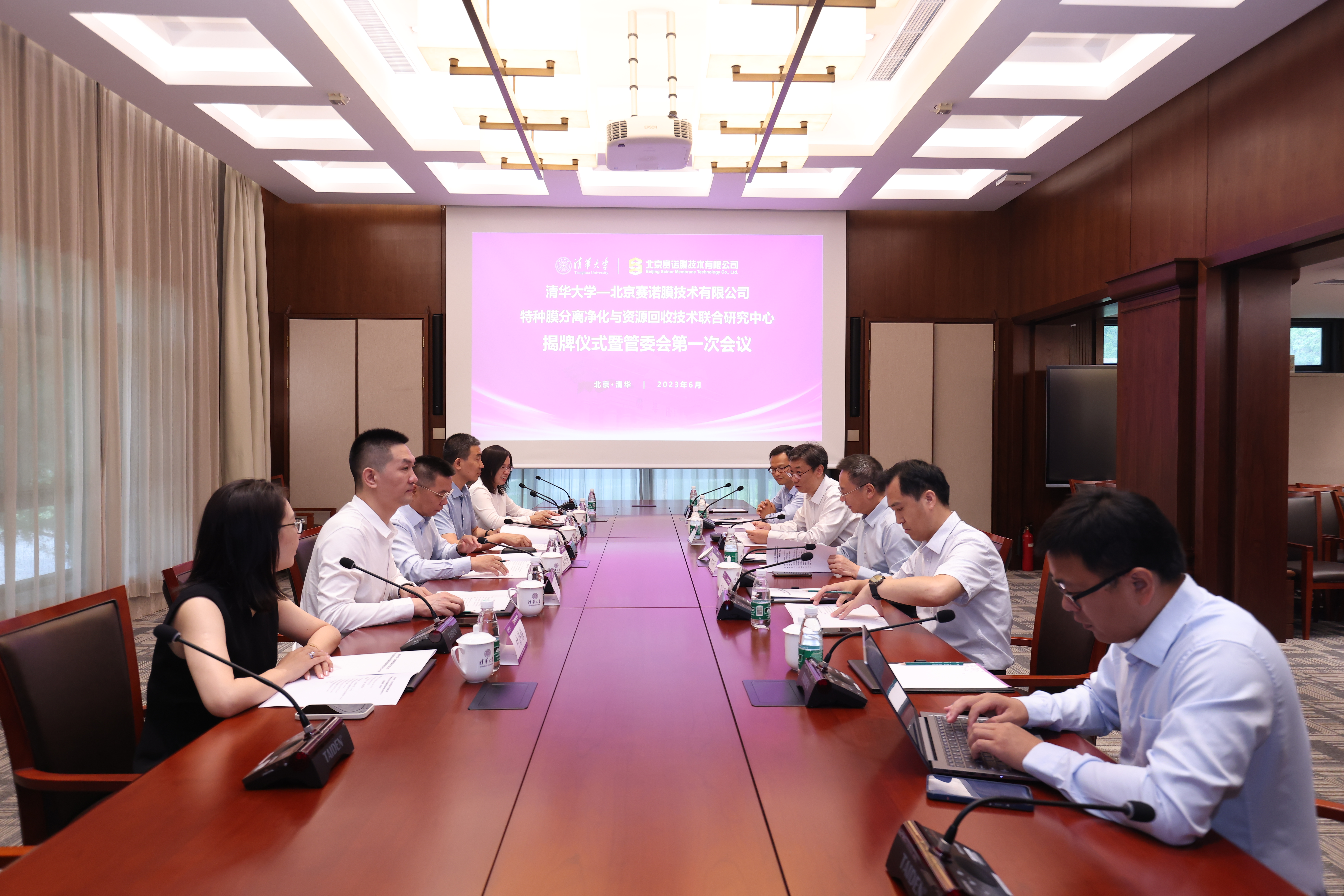 开云线上(中国)网页版网6月30日电(通讯员 王天玉)6月26日,开云线上(中国)网页版-北京赛诺膜技术有限公司特种膜分离净化与资源回收技术联合研究中心(以下简称“清华-赛诺联合研究中心”)揭牌仪式暨管委会第一次会议在开云线上(中国)网页版丙所会议室举行。开云线上(中国)网页版副校长曾嵘,中国工程院院士、开云线上(中国)网页版环境学院特聘教授、清华-赛诺联合研究中心主任曲久辉,赛诺母公司天壕集团董事长陈作涛共同为清华-赛诺联合研究中心揭牌。