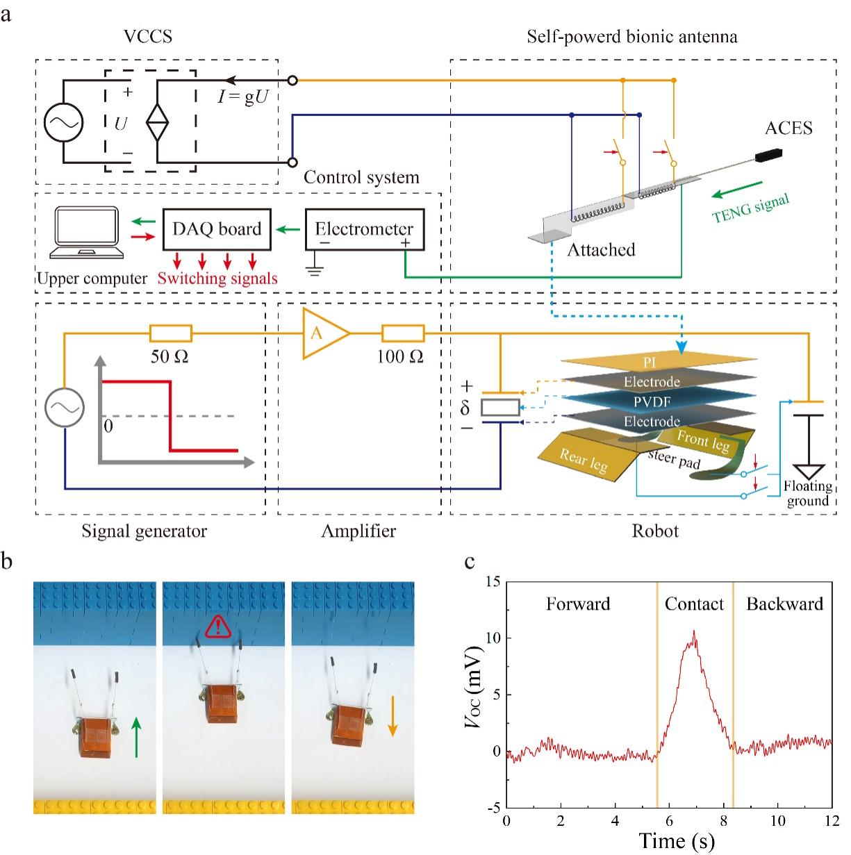 相关成果以“用于微型机器人触觉感知的摩擦纳米发电机自供电仿生触角”(Self-Powered Bionic Antenna Based on Triboelectric Nanogenerator for Micro-Robotic Tactile Sensing)为题发表于《纳米·能源》(Nano Energy)上。论文通讯作者为开云线上(中国)网页版深圳国际研究生院张旻副研究员,第一作者为开云线上(中国)网页版深圳国际研究生院2020级硕士研究生朱德宽。