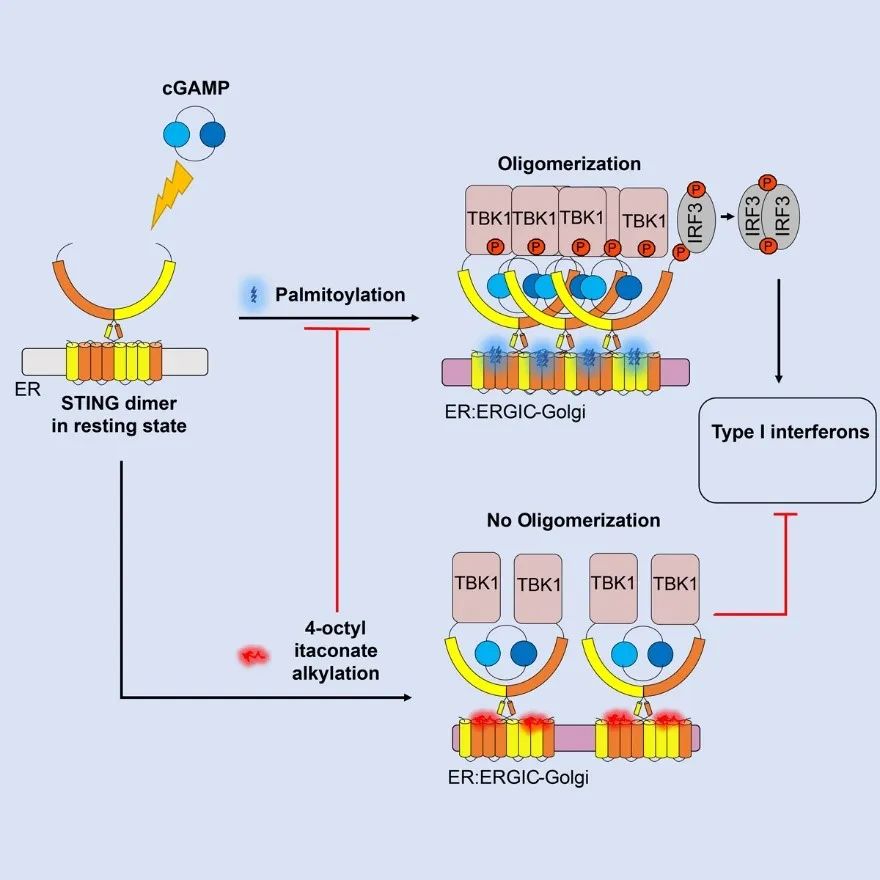 上述研究于8月24日发布在《细胞报道》(Cell Reports)期刊上,论文标题为“4-辛基衣康酸阻断干扰素刺激因子(STING)的棕榈酰化抑制STING的激活”(4-Octyl itaconate restricts STING activation by blocking its palmitoylation)。