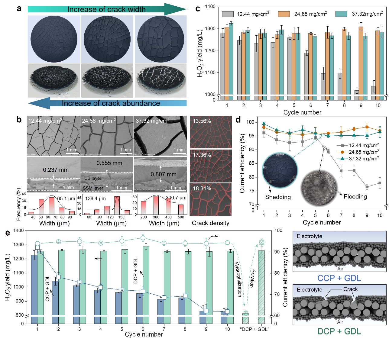 图2.裂缝介导的抗电润湿效应和强化的双电子氧还原反应性能