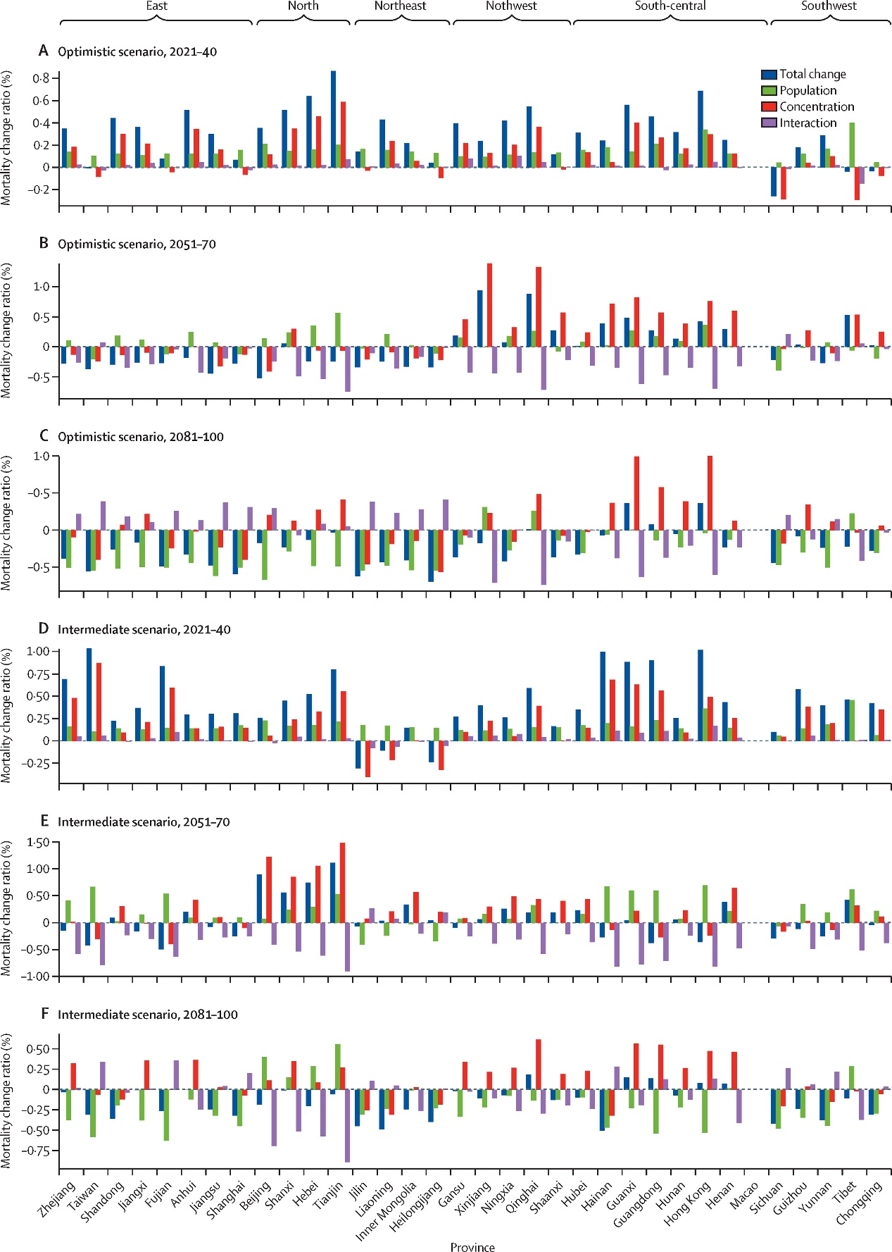 相关研究成果以“2021–2100年野火烟雾短期暴露引起的中国区域死亡风险预测:健康影响评估研究”(Projections of mortality risk attributable to short-term exposure to landscape fire smoke in China, 2021–2100: a health impact assessment study)为题,近日发表于《柳叶刀·星球健康》(The Lancet Planetary Health)。