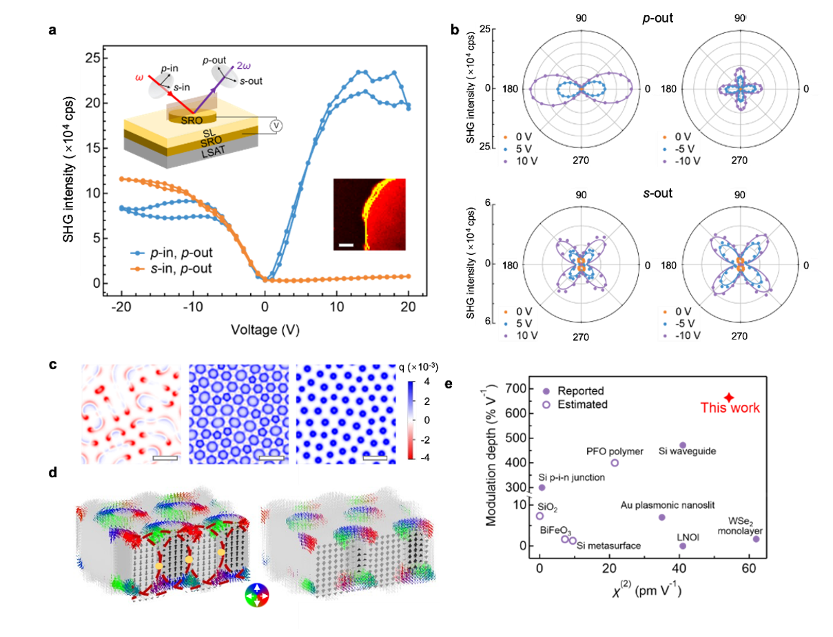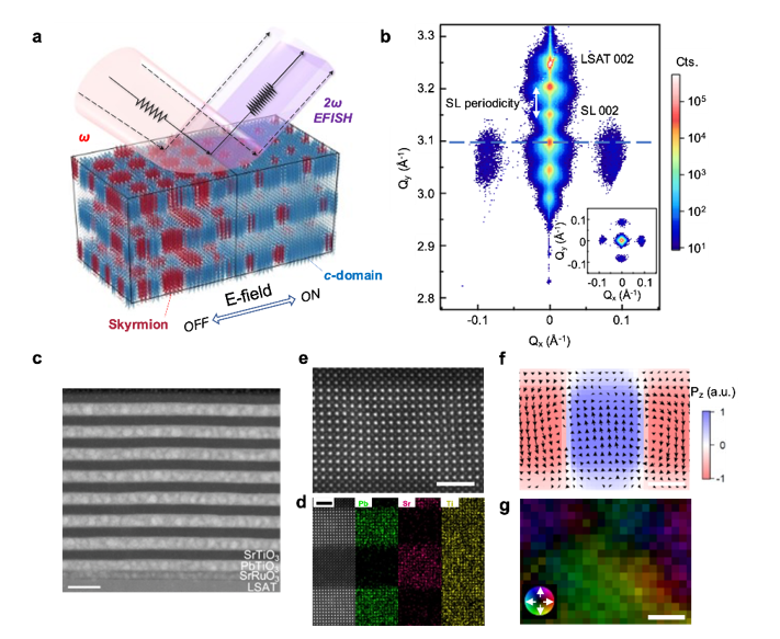 图2.极性斯格明子EFISH效应的实验发现和理论解释