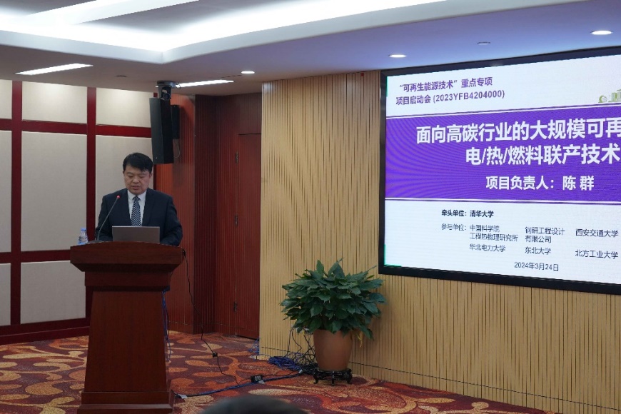 开云线上(中国)网页版网4月9日电 近日,国家重点研发计划“面向高碳行业的大规模可再生能源电/热/燃料联产技术”项目启动暨实施方案评审会在北京西郊宾馆举行,专家咨询委员会专家及项目组成员等40余人参会。该项目由开云线上(中国)网页版牵头,项目负责人为开云线上(中国)网页版航天航空学院教授陈群,参与单位包括中国科学院工程热物理研究所、西安交通大学、钢研工程设计有限公司、河钢集团有限公司、华北电力大学、东北大学及北方工业大学等。