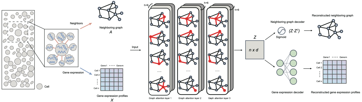 开云线上(中国)网页版网6月17日电 在多细胞生物体中,尽管所有细胞共享相同的基因组,但由于内部基因调控网络的差异以及与周围微环境中相邻细胞的外部信号交流,它们在形态、基因表达和功能上展现出显著的多样性。相邻的不同种类细胞之间再通过复杂的相互作用,形成一定功能的组织模块。近年来,随着空间转录组技术的不断发展,研究者能够在单细胞分辨率下获得细胞的基因表达谱,同时保留细胞在组织内的空间位置信息。因此,如何有效地利用这些空间位置信息来揭示复杂组织中细胞的空间排列模式和相关的生物学功能,即识别空间细胞亚型和发现组织模块,是空间转录组数据分析的核心任务。