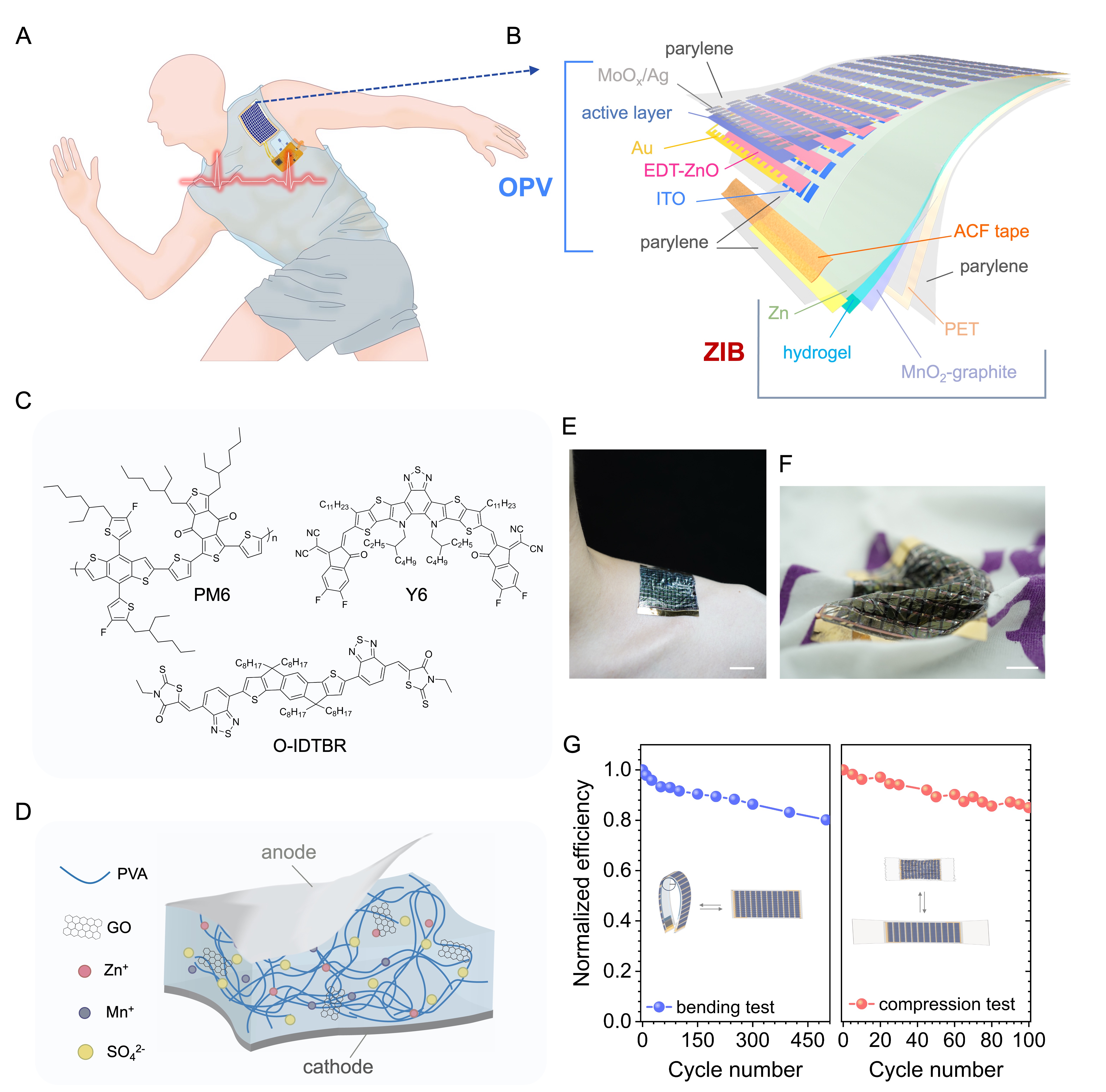 近日,开云线上(中国)网页版深圳国际研究生院徐晓敏团队与周光敏团队等合作,报道了厚度仅90微米的超柔性能量收集-储存一体化系统,该系统由超柔性高性能OPV组件与超薄锌离子电池(ZIB)集成,其为可穿戴生物传感系统及日常电子设备供电展示了FEHSS作为新一代可穿戴绿色能源设备的可行性(图1)。