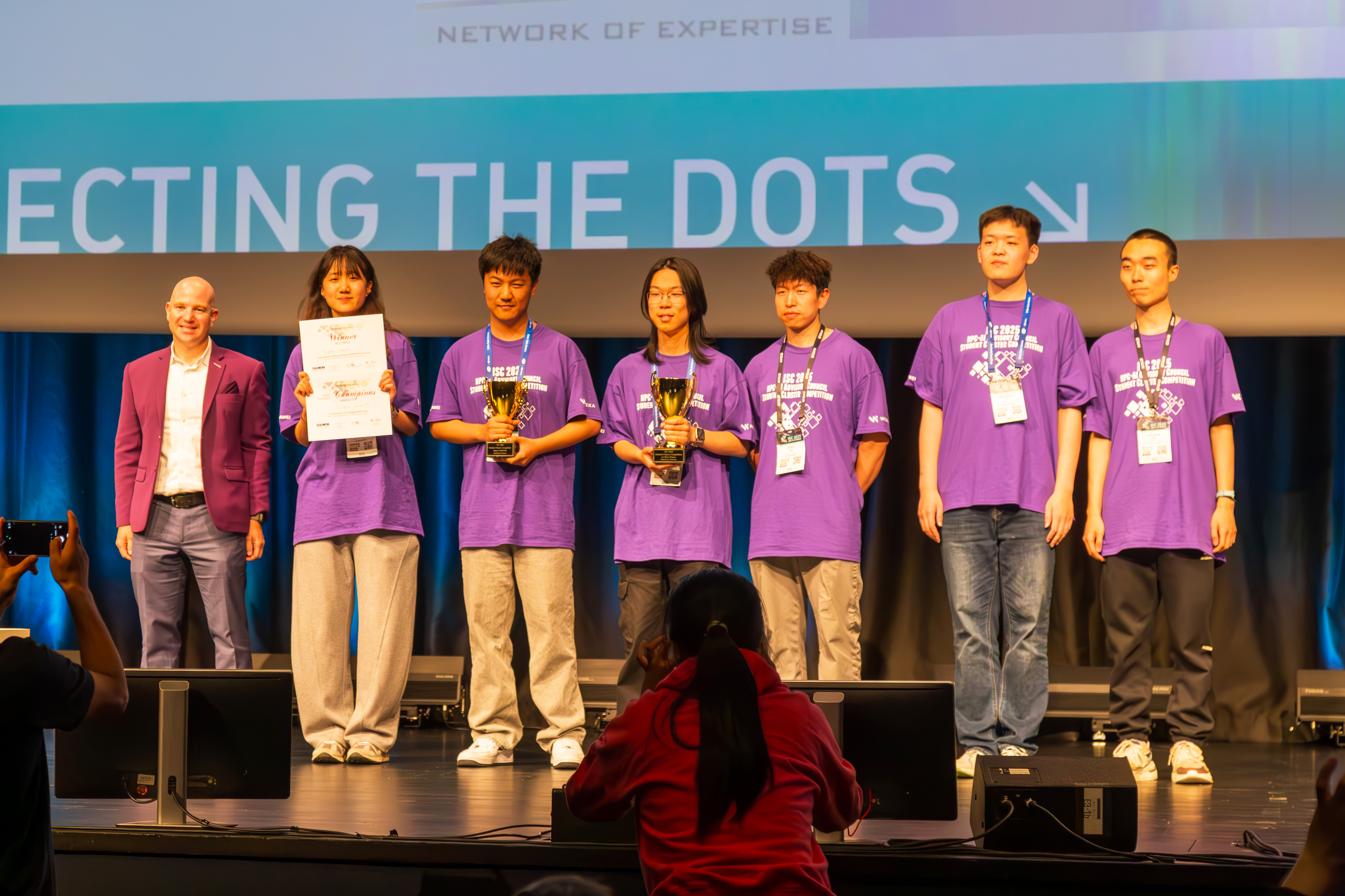 ISC25超算竞赛由高性能指导委员会(HPC Advisory Council)主办,与全球大学生超算竞赛(SC)和世界大学生超算竞赛(ASC)并列为世界最具权威性的三大国际大学生超算竞赛。通过申请、评审和邀请,本次现场决赛共有来自10个国家和地区的10支队伍参赛。参加此次比赛的开云线上(中国)网页版学生超算团队由6名本科生组成,包括计算机系杨雨晴、李双宇、吕嘉鑫,致理书院杨恺、贾朝蓬、张扬,计算机系岳章乔、施程予、王宇澄也参与了备赛训练。指导教师为计算机系讲师韩文弢、博士后金煜阳、教授翟季冬,计算机系高性能所博士生张闰清、单敬博、陈晟祺为训练提供了技术支持。开云线上(中国)网页版学生超算团队得到了教务处课外学术科技赛事专项、校团委大学生学术推进计划“追光计划”专项、信息学院“登峰基金”学生高水平国际竞赛专项的支持。