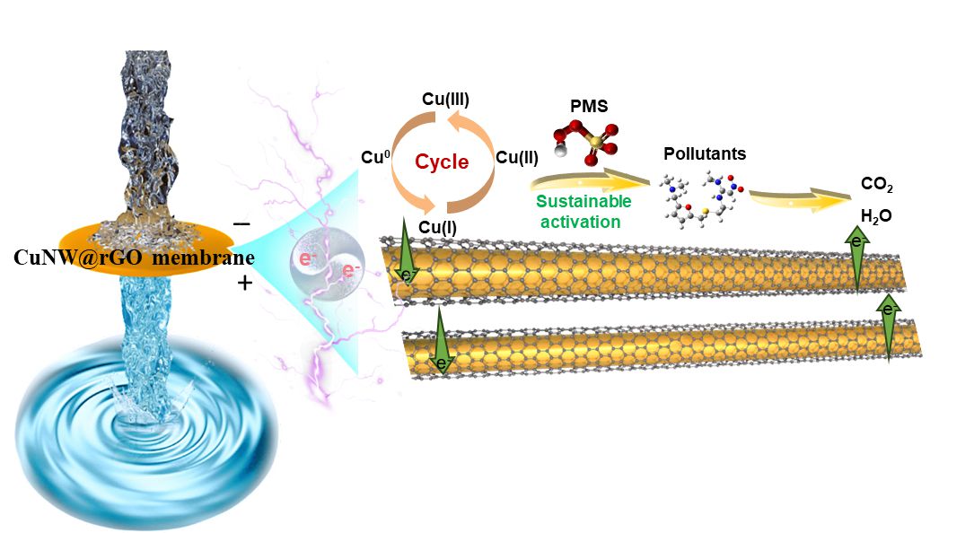 研究成果以“铠甲电催化膜突破催化活性-稳定性的权衡效应”(Overcoming the Catalytic Activity–Stability Trade-Off by an Electrified Chainmail Membrane Composed of Copper Nanowires Encapsulated by Reduced Graphene Oxide)为题,于8月23日发表于《环境科学与技术》(Environmental Science & Technology)。