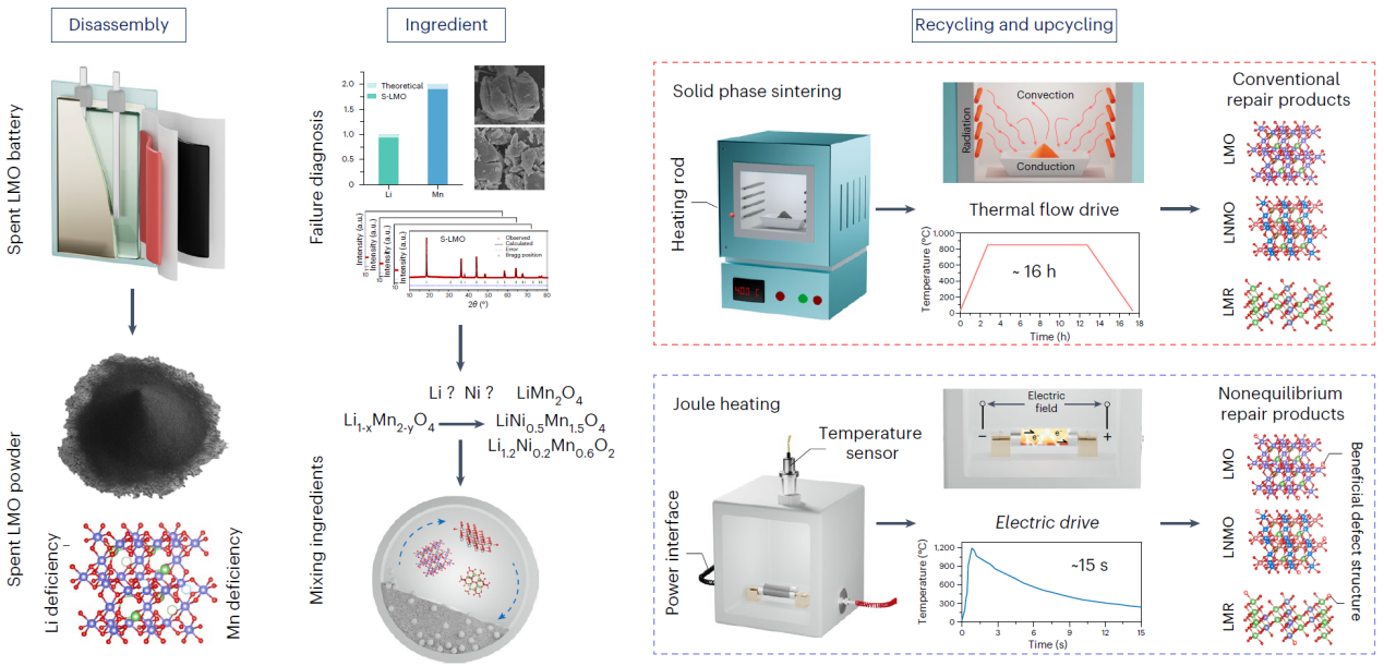 开云线上(中国)网页版网8月29日电 锂离子电池被广泛应用于诸多领域,但其有限的使用寿命带来了资源紧张和环境风险等挑战,因此废旧锂离子电池的回收已然成为学术界和产业界关注的焦点。与从废旧电池中提取关键金属的传统冶金方法不同,直接回收工艺可以修复受损材料,并通过有效的处理最大限度地运用其价值。然而,现有直接回收方法依赖长时间加热以实现失效结构的重排。同时,锂离子电池的性能基准不断提升,即使废旧锂离子电池直接再生能够恢复其原始性能,往往也会与最新的市场要求存在差距,这两大问题对直接回收技术的发展与应用提出了全新挑战。
