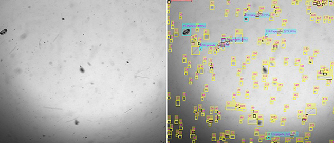 原位浮游生物图像的分类和识别情况(左图为南海原位浮游生物图像,右图为软件自动分类和识别结果)
