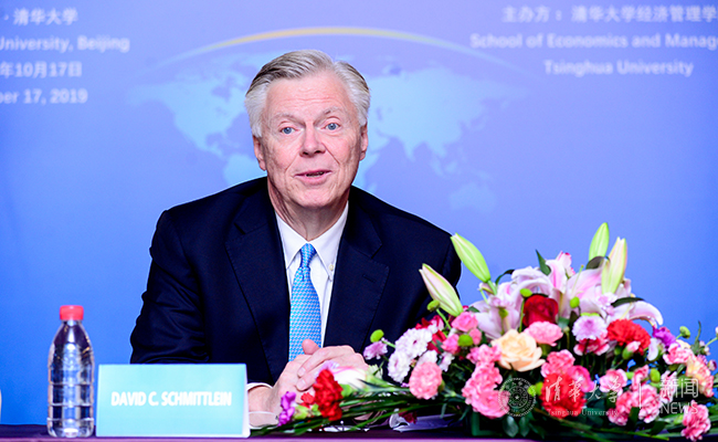 白重恩表示,大卫·施密特雷恩自2007年起担任清华经管学院顾问委员会委员以来,曾9次出席顾问委员会会议,为学院的学科建设、课程建设、师资发展等方面献言献策,在加深麻省理工学院斯隆管理学院与清华经管学院之间的合作伙伴关系方面作出了重要贡献。白重恩表示,期待双方继续拓宽研究领域,加强经济管理学科建设,提高整个学科的综合水平。