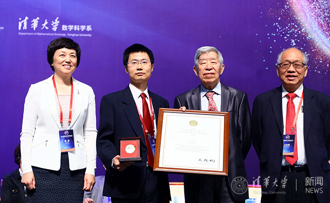 陈旭、丘成桐、杨乐为数学奖金奖获得者恽之玮(左二)颁奖 石加东 摄