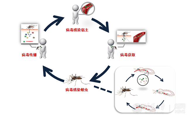 图3. 寨卡病毒传播途径 (通过蚊虫叮咬及蚊虫孵化感染)