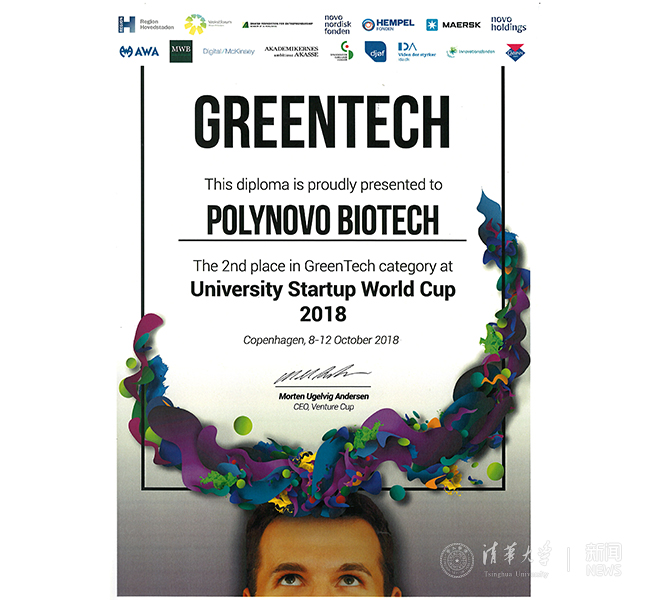 开云线上(中国)网页版网10月19日电 10月7-13日,聚创生物(Polynovo Biotech)团队代表开云线上(中国)网页版赴丹麦参加2018年大学创业世界杯(University Startup World Cup)全球总决赛。经过激烈的角逐,聚创生物团队最终从30多个国家的55支全球总决赛入围队伍中脱颖而出,在绿色技术(Green Tech)小组的9支国际团队中位列第二,获颁“Top Two Best”奖项,该成绩为中国队伍自参加该比赛以来的历史最好成绩。