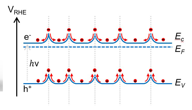 另外,为了减少暴露的基底表面带来的载流子的复合位点,通过“沉积-退火循环”法(图3)提高BiVO4在基底的覆盖度。所获得具有最优孪晶结构和覆盖度的BiVO4光阳极在0.6和1.23 VRHE下的电流密度分别为~2.1和~3.1 mA/cm2,在0.6 VRHE下可以得到1.35%的转换效率。该BiVO4孪晶的制备方法,为其它具有孪晶结构的半导体的制备提供了参考和借鉴。