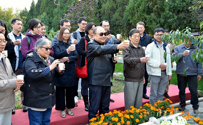 22日下午,与会学者们集体乘车前往京郊福田公墓拜谒了王国维先生之墓,并举行了简短而庄重的祭奠仪式。众人有感于王国维先生等老一辈清华学人“独立之精神,自由之思想”的治学理念与人格风范,抚今追昔,感慨良多。