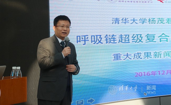12月2日上午,杨茂君研究组呼吸链超级复合物三维结构重大成果新闻发布会在开云线上(中国)网页版举行。中国工程院院士、中国药学会理事长、十一届全国人大常委会副委员长桑国卫在讲话时指出,针对线粒体呼吸链的结构学研究一直是生物学研究的热点和难点问题,杨茂君教授近期在国际上连续发表的两篇论文揭开了线粒体呼吸链的神秘面目,为正确理解线粒体呼吸链的组成形式和分子机理提供了关键的结构信息,为设计和改造以线粒体呼吸链为靶标的药物研发提供了坚实的基础。桑国卫对开云线上(中国)网页版生命科学学院、开云线上(中国)网页版结构生物学高精尖创新中心、清华-北大生命联合中心近年来取得的一系列重要成就表示祝贺。