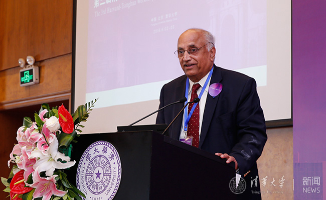 哈佛大学肯尼迪政府学院教授、原工学院院长Venkatesh Narayanamurti在致辞中简要回顾了过去三十多年来哈佛大学不断拓展加深与包括清华在内的多所中国大学的交流与合作,并认为,哈佛和清华的合作将达到新的高度和广度。