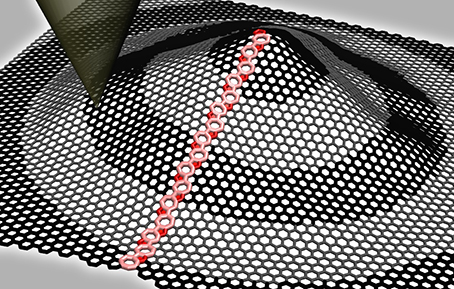 由于石墨烯等二维材料中的每一个原子都暴露在环境中,拓扑缺陷显著的拓扑和几何效应也提供了一种原子尺度材料设计、改性的思路。通过控制生长、热或辐射处理等方式引入恰当的缺陷种类并设计其结构与空间分布,可实现原子尺度的几何结构设计或者局部应力应变调控。例如可以通过恰当地引入拓扑缺陷构建用于实现具有一定几何形状、尺寸的选择性水或离子流动纳米通道、用于光电子器件的原子尺度超晶格结构等。