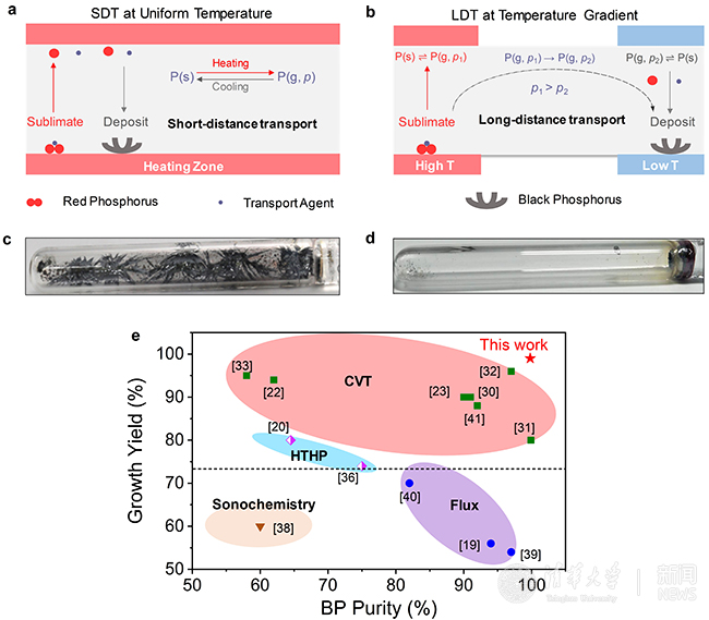 图1:均匀温度短程输运策略生长高产率、高纯度黑磷晶体