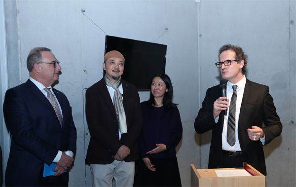 白明(左二)在展览开幕式上