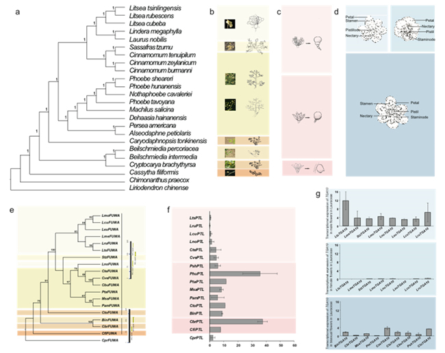 同时,团队系统研究了樟科各代表属系统发生关系,提供了樟科花序从总状花序、圆锥花序向伞形花序演变的分子证据,以及樟科从单性花到两性花的性别分化过程中重要的调控基因。