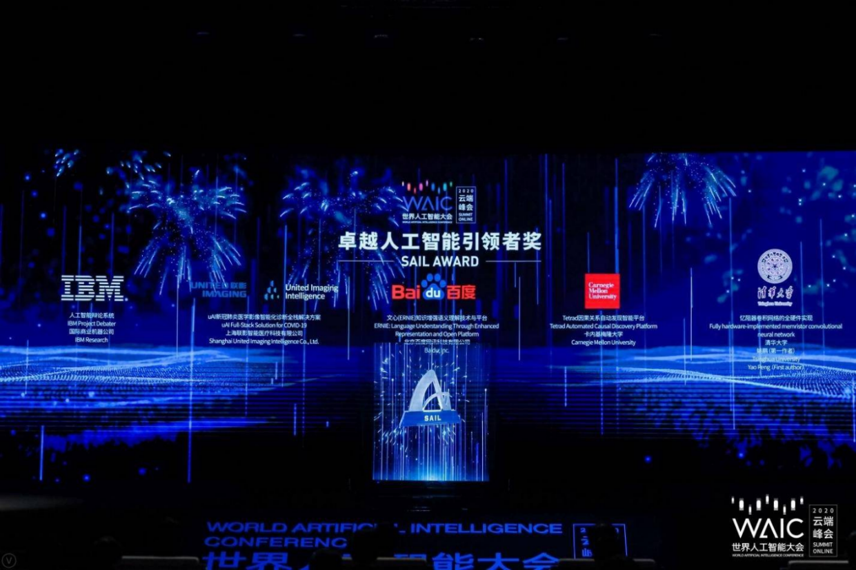 SAIL奖寓意“扬帆起航”,希望展现人工智能未来发展乘风破浪的美好愿景,是世界人工智能大会打造的技术风向标。本届SAIL奖吸引了来自德国、美国、以色列、新加坡等国家的800余个项目参评,经过激烈的角逐,最终评选出“开云线上(中国)网页版忆阻器卷积网络的全硬件实现”“IBM Project Debater”“联影智能uAI新冠肺炎医学影像智能化诊断全栈解决方案”“百度文心(ERNIE)知识增强语义理解技术与平台”“卡内基梅隆大学Tetrad因果关系自动发现智能平台”五个项目获奖。