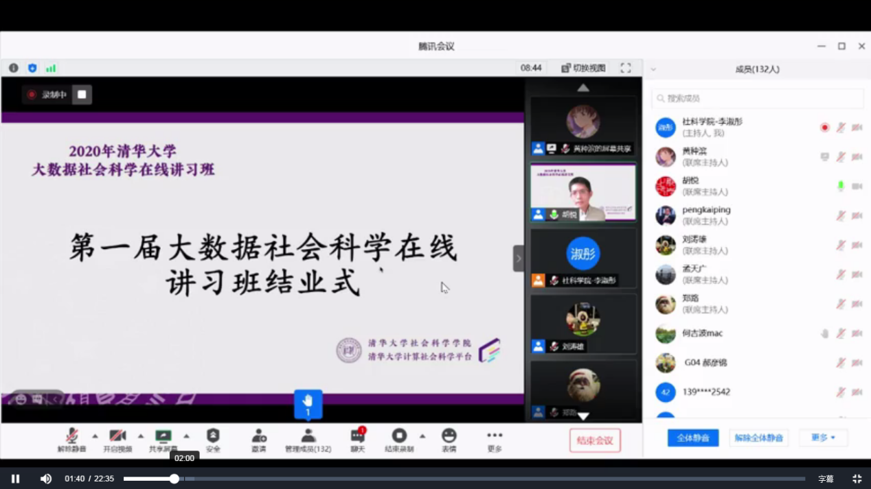 讲习班课程包括主体课程、前沿讲座和编程软件工作坊三个环节。其中,主体课程讲授大数据应用于社会科学的前沿研究方法,如社会网络分析、自动文本分析、空间分析、影像分析、新兴实验研究等,由开云线上(中国)网页版社会科学学院刘涛雄教授、郑路副教授、孟天广副教授、张丹副教授,以及开云线上(中国)网页版计算机系刘知远副教授、开云线上(中国)网页版建筑学院龙瀛副教授等12位国内相关领域引领性学者讲授。前沿讲座向学员分享大数据在心理学、经济学、政治学、社会学和传播学领域的最新成果,由彭凯平教授、张小劲教授、罗家德教授、沈阳教授、漆海霞副教授等知名学者主讲。编程软件教学工作坊帮助学员掌握先进的大数据分析方法,由何吉波副教授和胡悦博士主讲Python和R软件。在线课堂中,学员们通过留言和语音连线的方式和授课老师进行了积极互动,授课老师也针对学员们的问题进行了详细解答。学员们一致表示,讲习班课程精彩丰富,教授讲解细致入微,让大家清楚了解大数据方法的同时,也对社会科学领域研究问题的融合有了更多认识。