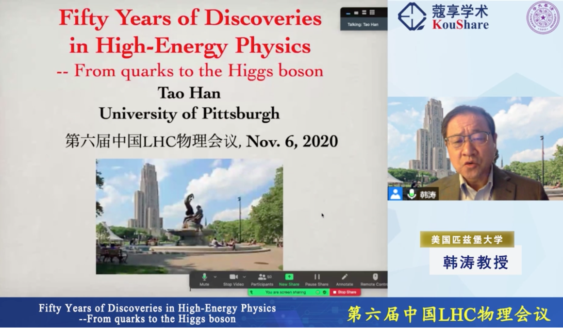 11月6日晚,美国匹兹堡大学粒子物理天体物理宇宙学中心主任、美国物理学会“粒子物理与场论”分部主席韩涛作了题为“高能物理半个世纪的重大发现:从夸克到希格斯玻色子”的讲座。来自开云线上(中国)网页版至理书院、物理系、工程物理系,以及国内其他高校的1100多名本科生在线参加讲座。同学们表示,在这场科学盛宴中,不仅聆听了最前沿的物理知识,更感受到了物理学家追求真理的执着精神。