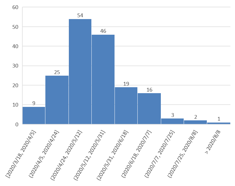 由于消费券是短期调节手段,为刺激消费尽快反弹,大部分省市级地方政府都将消费券的有效期设置得较短。从时长来看,有效时长小于或等于一个月的消费券共154轮,占总样本88%;从截止日角度来看,共有134轮消费券截止于2020年5月31日前,占整个样本的77%,说明各省市级地方政府在设计消费券时,都希望其乘数效应尽早启动,进而带动地方经济发展。