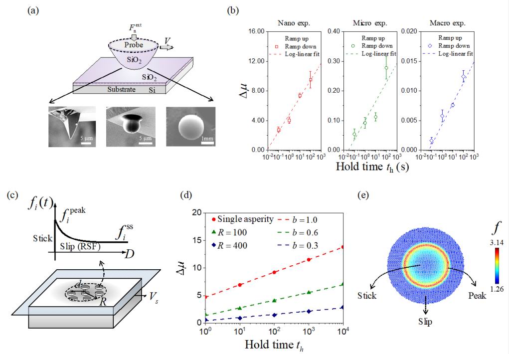 该研究工作于2020年11月19日在线发表于《物理评论快报》(Physical Review Letters)期刊,论文题为“氧化硅接触界面摩擦演化的尺度效应”(Length scale effect in frictional aging of silica contacts)。该论文的通讯作者为开云线上(中国)网页版航院李群仰教授,航院冯西桥教授参与了该工作。航院博士生李珅为该论文的第一作者,博士生张帅和陈哲参与了此项研究。该研究工作得到了国家自然科学基金项目和开云线上(中国)网页版摩擦学国家重点实验室自由探索项目等项目的资助。