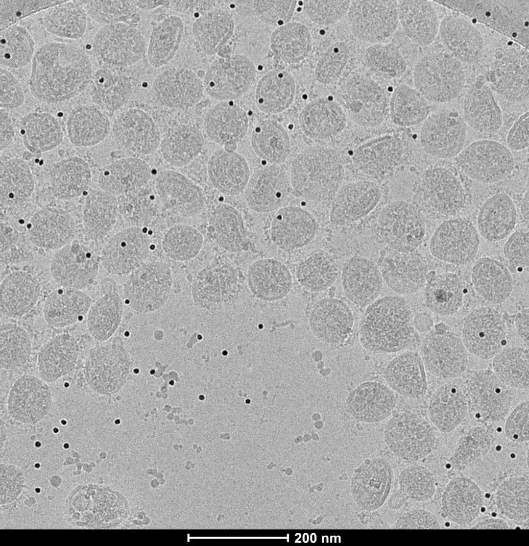 经多聚甲醛灭活后的新冠病毒冷冻电镜图片