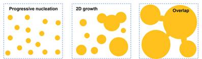 SEI渐进形核和二维生长机制的示意图