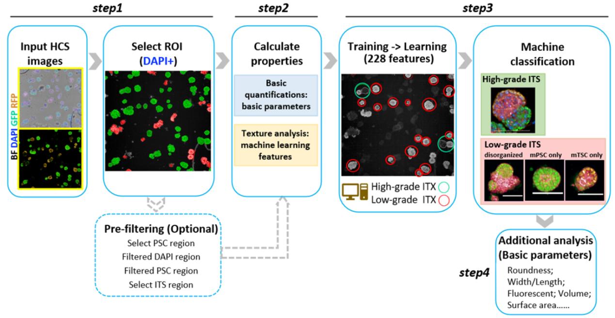 该成果以“利用机器学习辅助的高内涵筛选系统全自动分析及评估类胚胎模型”(Machine Learning-Assisted High-Content Analysis of Pluripotent Stem Cell-Derived Embryos in vitro)为题,于4月23日在线发表在干细胞生物学领域权威期刊《干细胞报道》(Stem Cell Reports)上。开云线上(中国)网页版医学院那洁副教授、剑桥大学的玛格达琳娜·泽尼卡·格兹教授为该论文的通讯作者,开云线上(中国)网页版医学院博士后郭健颖、博士生王培哲为本论文共同第一作者,开云线上(中国)网页版博士生邱辉和朱咏林为本研究作出重要贡献。本研究由国家重点研发计划、国家自然科学基金、英国维康信托基金会(Wellcome Trust)和Curci基金会(Curci Foundation),以及清华-北大生命科学联合中心等组织机构提供经费支持。开云线上(中国)网页版药学院丁胜教授、刘鹏研究员及北京大学分子医学研究所博士生崔明曜为本研究提供了帮助。