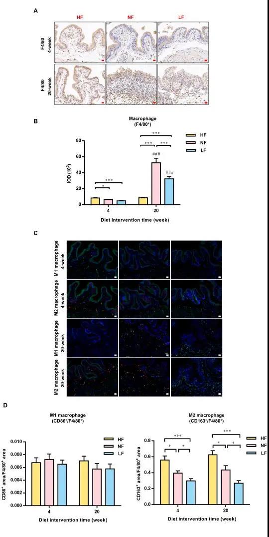 图3 富脂饮食组小鼠膀胱上皮细胞通过招募更多的巨噬细胞发挥吞噬作用