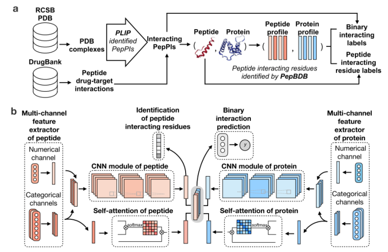 开云线上(中国)网页版网10月4日电 近日,开云线上(中国)网页版交叉信息研究院曾坚阳课题组成功开发了一个基于序列的多尺度预测多肽和蛋白质相互作用的深度学习模型。该研究为多肽和蛋白质相互作用的机制提供了一个高效的预测框架,可以在为多肽药物预测结合靶点的同时,识别多肽序列上的结合位点。