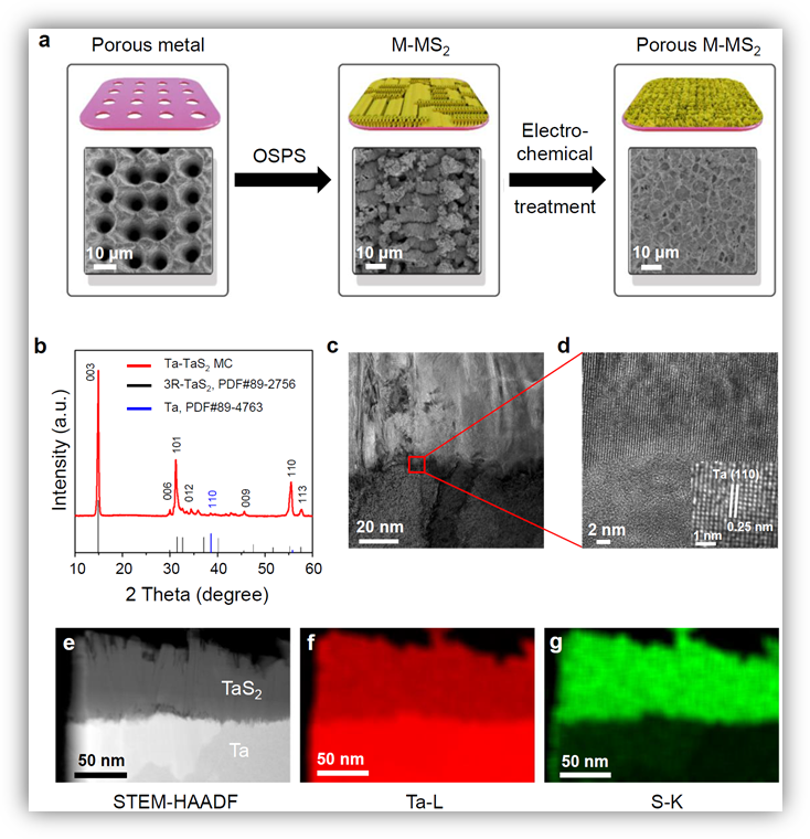 相关研究成果近期以“一种具有鲁棒性和金属性界面的Ta-TaS2同源单体催化剂用于大电流析氢”(A Ta-TaS2 monolith catalyst with robust and metallic interface for superior hydrogen evolution)为题在线发表在《自然·通讯》(Nature Communications)期刊上。论文第一作者为开云线上(中国)网页版深圳国际研究生院余强敏博士,通讯作者为刘碧录副教授和孙成华教授。论文作者还包括开云线上(中国)网页版深圳国际研究生院成会明教授、邹小龙副教授、丁宝福博士、罗雨婷博士,博士研究生张致远、刘鹤鸣,硕士研究生杨丰宁、葛诗玉,以及东莞理工学院的邱思瑶博士、中科院金属研究所的任文才研究员和刘志博博士。该研究得到了国家自然科学基金委、广东省创新创业团队项目、深圳市科创委和发改委等支持。