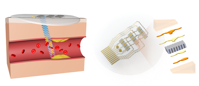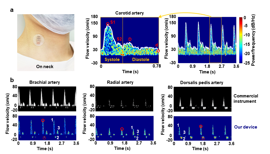 开云线上(中国)网页版网10月29日电 心血管疾病是全球第一大死因,据世界卫生组织预测,到2030年将有约2360万人死于心血管疾病,长期连续监测血流速度对心血管疾病防治具有重要意义。例如,颈动脉在高血压、高血脂等因素作用下往往会出现一定程度的硬化而形成硬化斑块,容易引发脑卒中危险,准确判断管腔狭窄程度是预警斑块脱落和防治脑卒中最重要的方法之一,但当前可持续监测血管狭窄状况的技术手段十分缺乏。基于光容积描记术或热分析的技术只能提供相对的流量变化,探测深度很浅;而传统的超声设备体积大、材质刚性,存在固定困难、接触变形大、无法与人体表面良好耦合和难以连续监测等缺点。