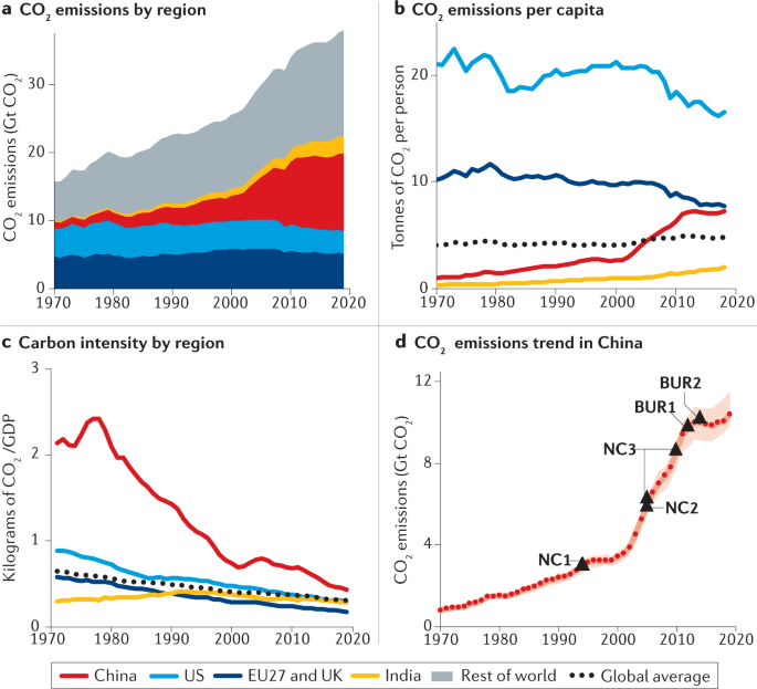 文章指出,目前中国二氧化碳排放最主要的来源是电力和工业部门,在快速的工业化和城市化进程中发展起来的以煤炭为主的能源系统是1970年后中国碳排放增长的主要驱动力。近年来,中国的经济发展采取了一系列低碳发展战略,使得二氧化碳排放增速不断降低,甚至二氧化碳年排放总量出现了短期的下降。