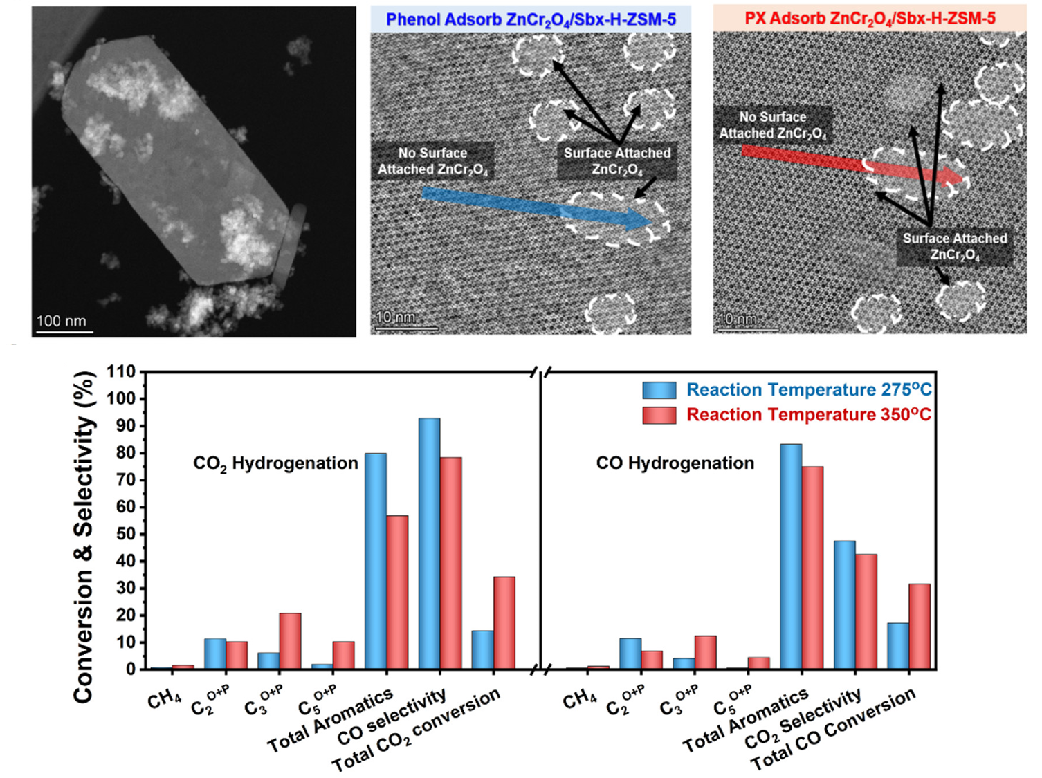 纳米ZnCr2O4尖晶石和短b轴H-ZSM-5分子筛酸碱异质结耦合催化体系及其CO2/CO加氢反应性能
