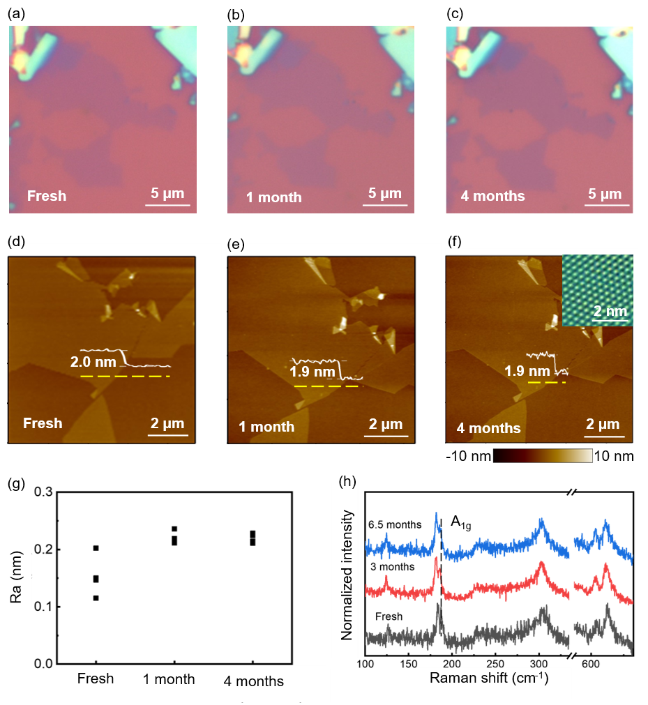 在此项研究中,研究人员首先采用化学气相传输法(CVT方法)制备出块状β-ZrNCl晶体,之后采用黏胶带剥离法获得单层和少层β-ZrNCl。在此基础上,研究人员系统地探究了单层和少层ZrNCl的拉曼光谱及其与体相材料的区别。结果表明随着层数的减少,位于189cm-1的A1g特征峰出现了明显的红移,且峰强明显降低,并且当ZrNCl的层数降低至单层时,该峰消失。这些结果表明拉曼光谱可以作为一种快速且无损的手段来表征二维ZrNCl的层数。