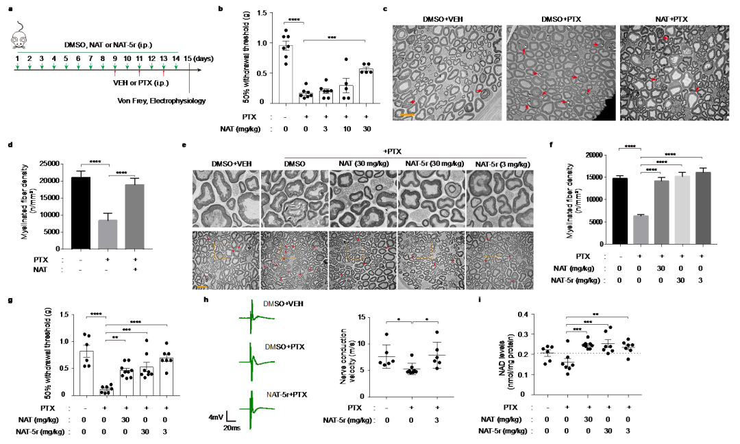 图4:NAT和NAT-5r在小鼠CIPN模型中的神经保护效果
