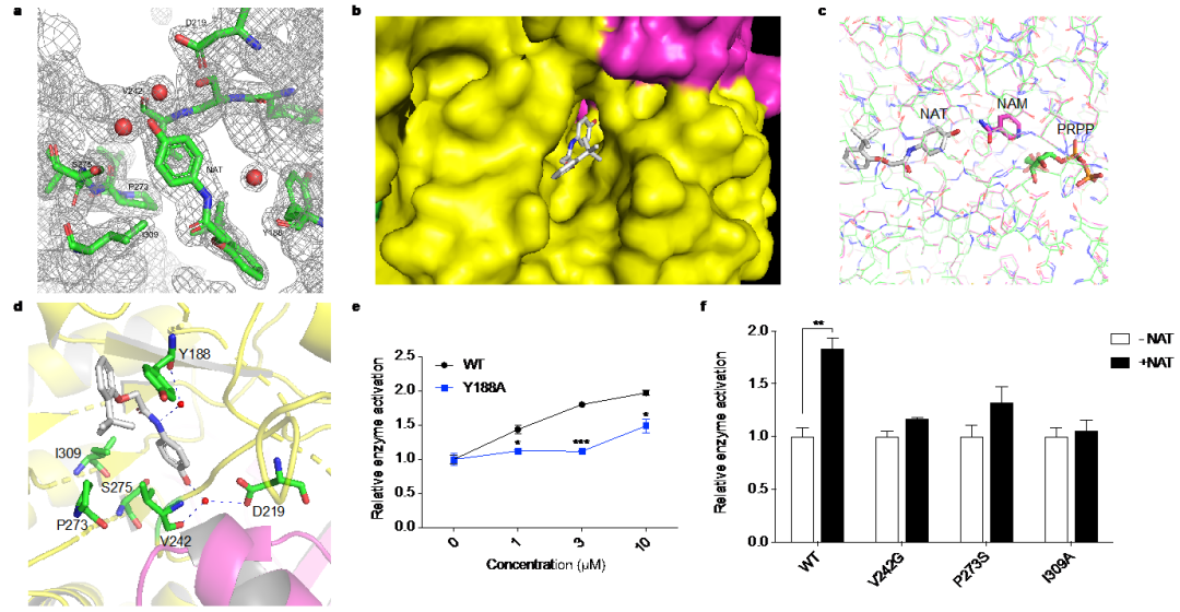 图2:通过NAT与NAMPT复合物晶体结构揭示小分子与靶点的作用模式