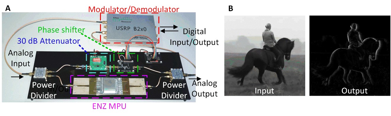 开云线上(中国)网页版网8月1日电 7月27日,开云线上(中国)网页版电子工程系李越副教授团队与自动化系吴嘉敏助理教授、戴琼海院士团队合作,在《科学·进展》(Science Advances)期刊发表了题为“利用介电常数近零媒质进行微积分运算”(Performing calculus with epsilon-near-zero metamaterials)的研究论文,采用介电常数近零(epsilon-near-zero, ENZ)媒质在亚波长尺度实现对模拟信号的微积分运算,并设计研发了具有高计算密度的微积分运算器件,搭建具有边缘检测功能的高集成度图像处理系统。本文所提出的微积分运算器件具有小尺寸、高集成度、高计算密度的性能优势,对下一代光电计算系统的功能开发和芯片集成提供了可行的技术方案。