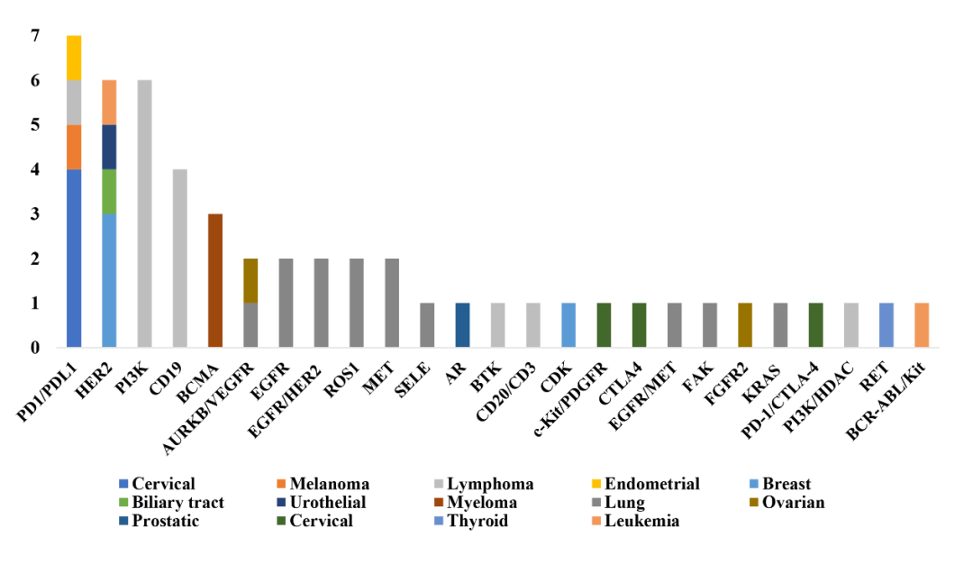 图1.抗肿瘤BTD药物靶点分布(n=51)