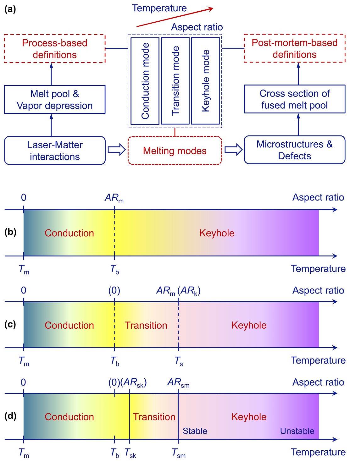 开云线上(中国)网页版网10月24日电 在过去的三十多年中,金属增材制造技术(俗称金属3D打印)快速发展,对航空航天、汽车、国防、化工、医药、能源等领域产生了深刻变革。激光粉末床熔融增材制造(亦被称作激光选区熔化)是其中最广泛使用的技术之一。然而,迄今为止,学术界对激光-物质相互作用的认识还不够深刻,对激光熔化模式的定义仍然很模糊、尚未达成共识。这使得制造无缺陷、微观结构可控的构件仍有困难,限制了激光粉末床熔融增材制造行业的进一步突破。